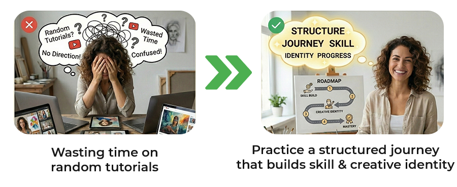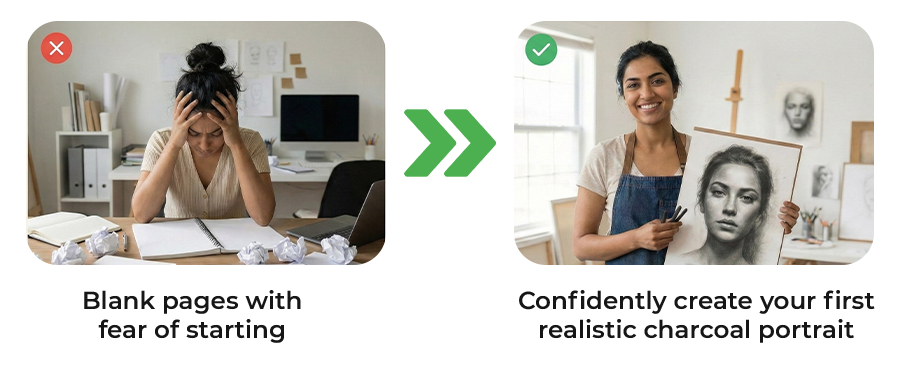 Hi, I’m Vaishnavi Khandkar, expert in realistic charcoal portraiture. Over the past years, I’ve guided thousands of beginners—students, homemakers, working professionals, and retirees—to create lifelike portraits with confidence. My mission is to help people rediscover joy, fulfillment, and creativity through art while building a vibrant learning community. Here, members share, collaborate, and grow together, receiving mentorship, resources, and inspiration to consistently improve. Whether you want a hobby, personal growth, or monetizable skills, this community empowers your artistic journey.