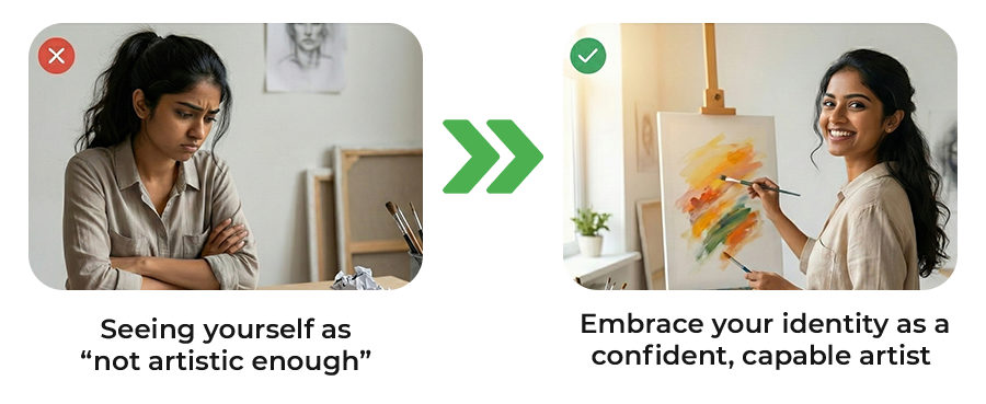 I felt a great shift in myself and I have learned many new techniques which made me feel so confident. Charcoal was a new medium for me but still I performed well because of a proper guidance and mentorship and the way our doubts get cleared they make us feel confident and we start feeling a potential in ourself and I just wanted to say I loved these classes and support.